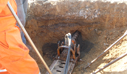 El topo realiza perforaciones bajo calzada con un diámetro de 75, esto trabaja con compresor de aire de tornillo...